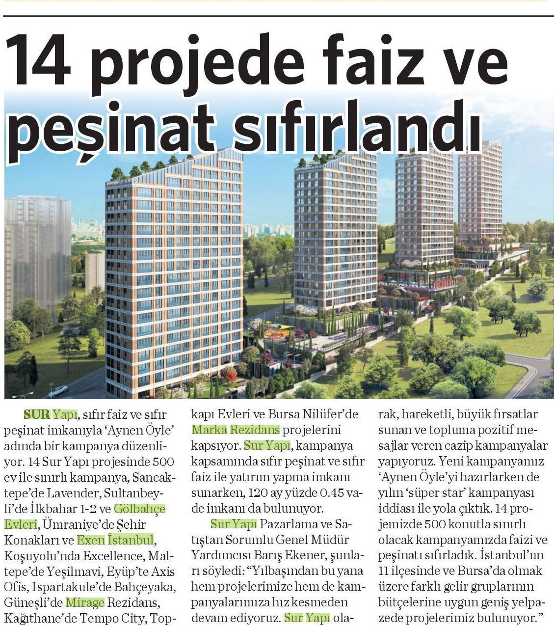 14 Projede Faiz Ve Peşinat Sıfırlandı