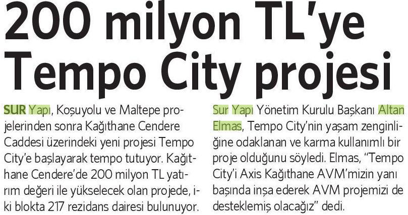 200 Milyon TL'ye Tempo City Projesi