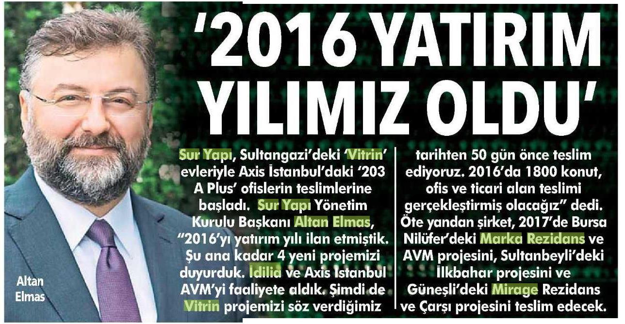 2016 Sur Yapı'nın Yatırım Yılı Oldu