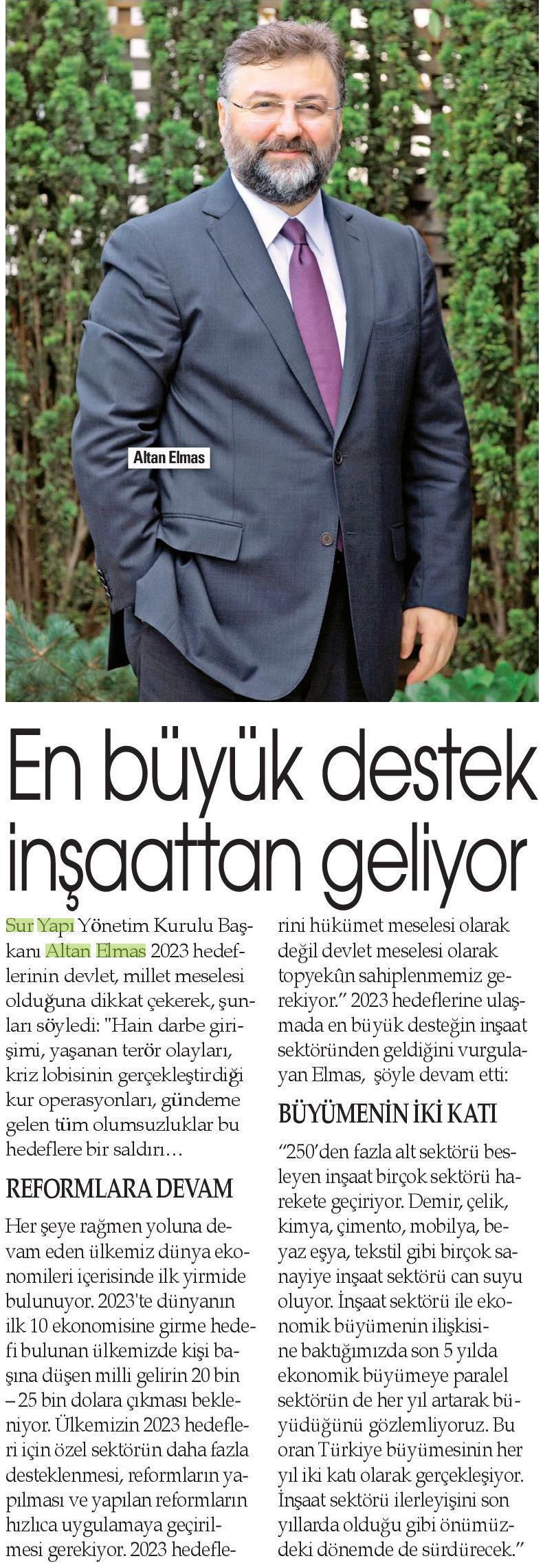 2023 Yolunda En Büyük Destek İnşaattan Geliyor