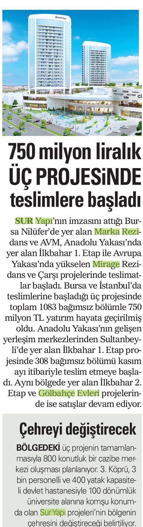 750 Milyon Liralık Üç Projesinde Teslimlere Başladı