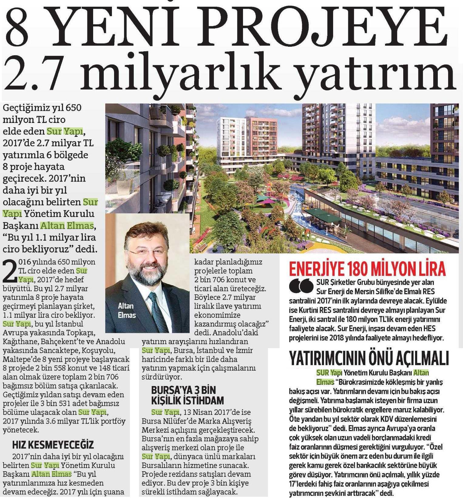 8 Yeni Projeyle 2.7 Milyarlık Yatırım