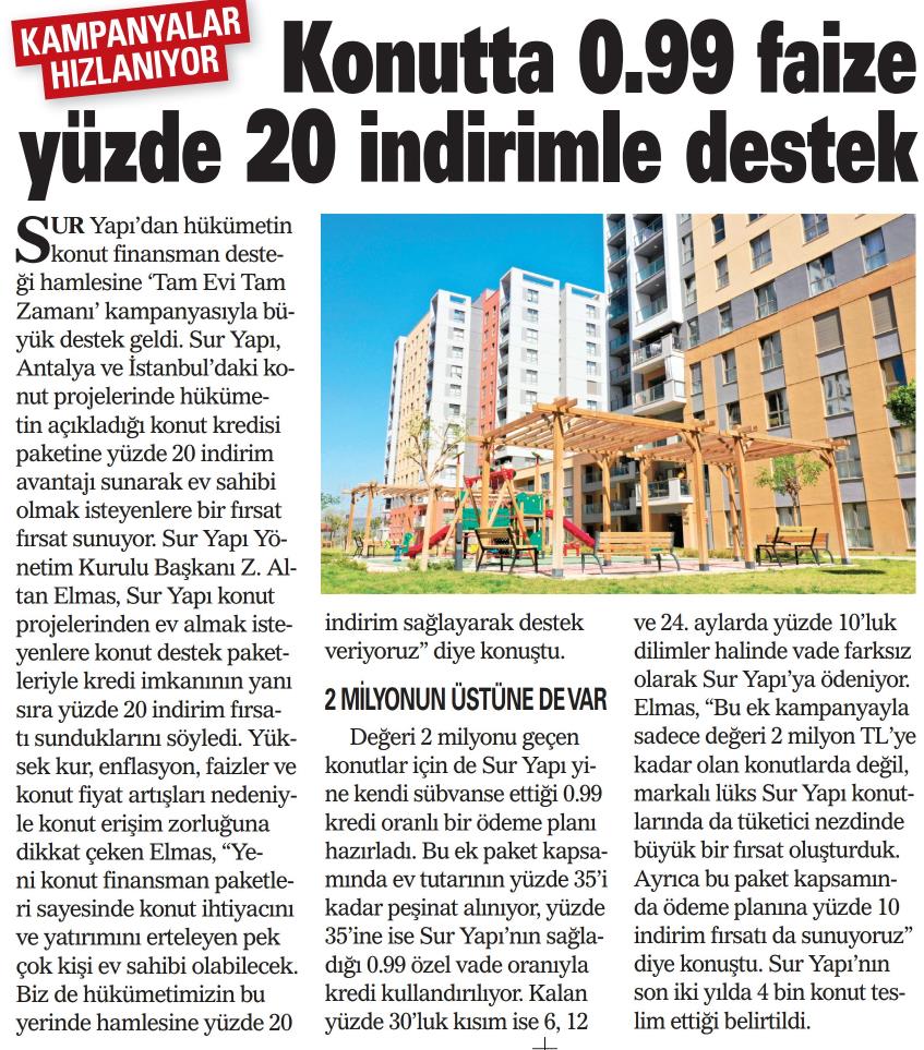 Konutta 0.99 Faize Yüzde 20 İndirimle Destek