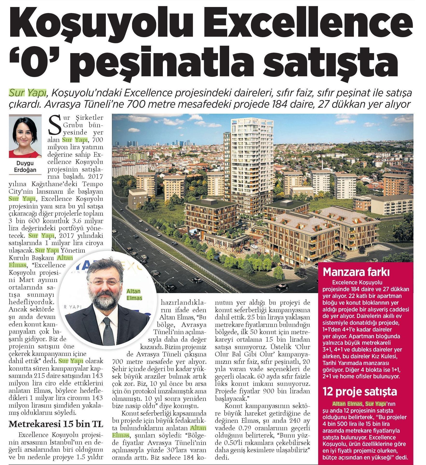 Koşuyolu Excellence 0 Peşinatla Satışta