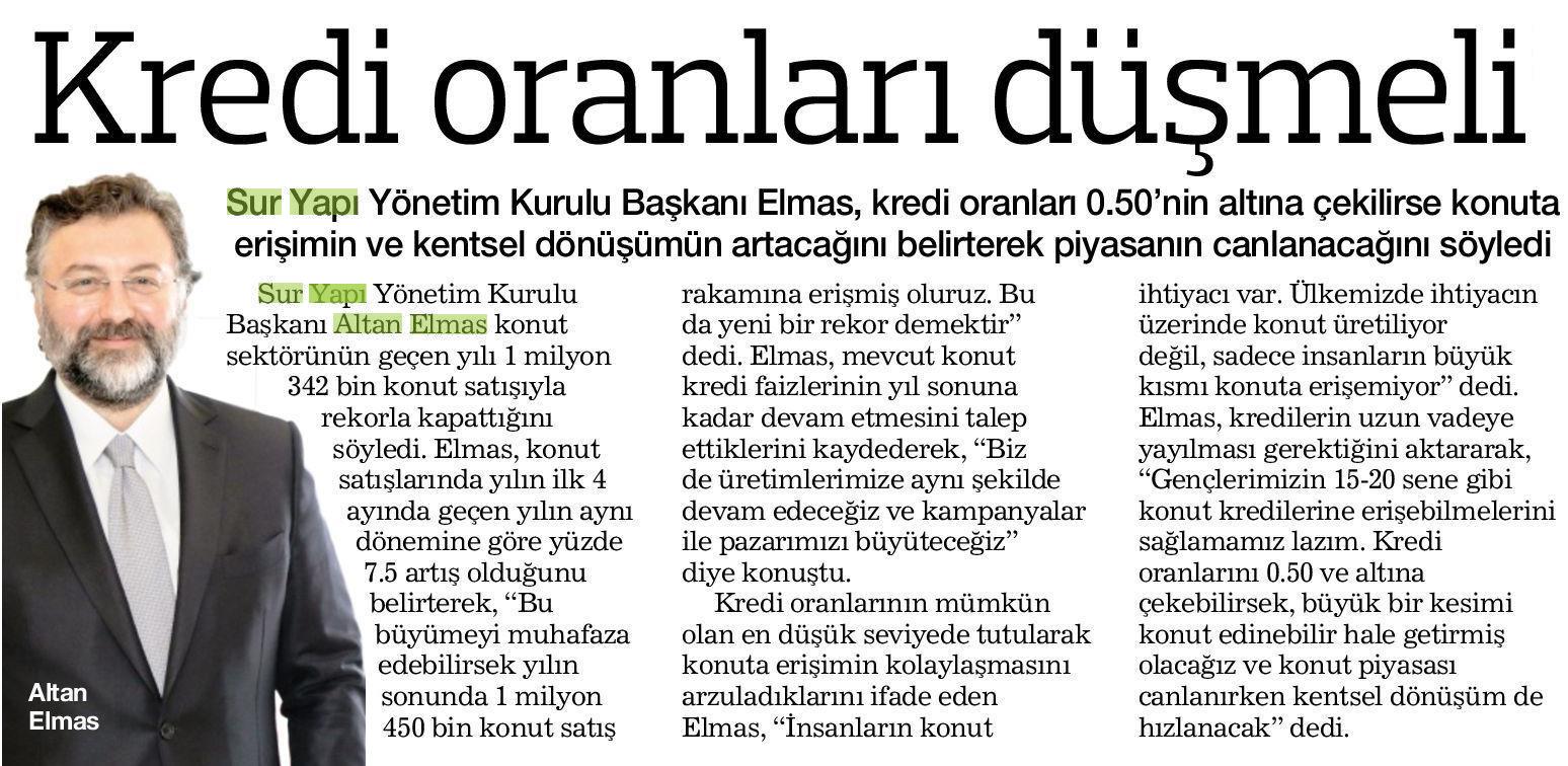 Kredi Oranları Düşmeli