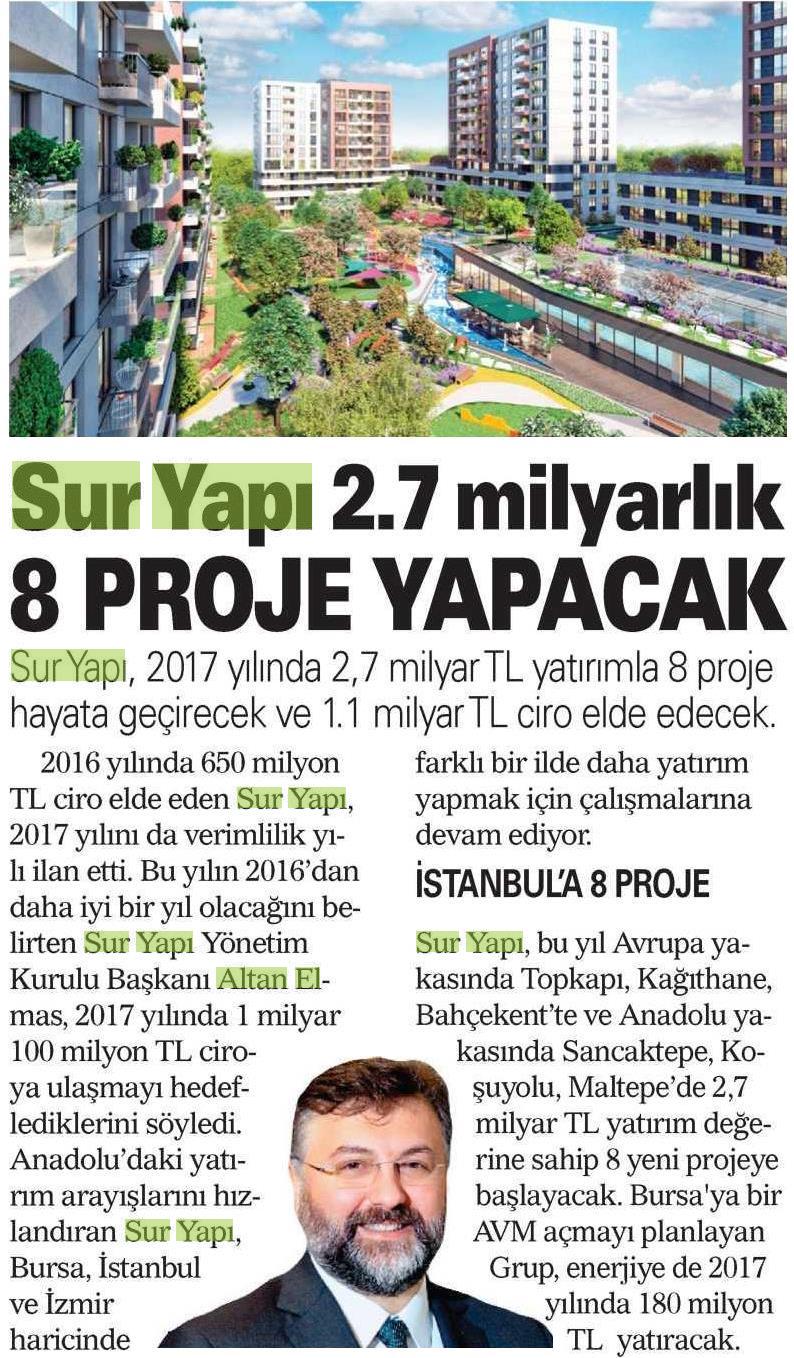 Sur Yapı 2.7 Milyarlık 8 Proje Yapacak