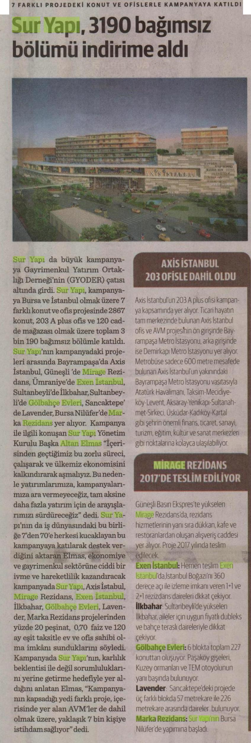 Sur Yapı, 3190 Bağımsız Bölümünü İndirime Aldı