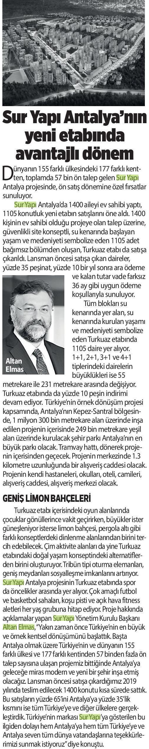 Sur Yapı Antalya'nın Yeni Etabında Avantajlı Dönem