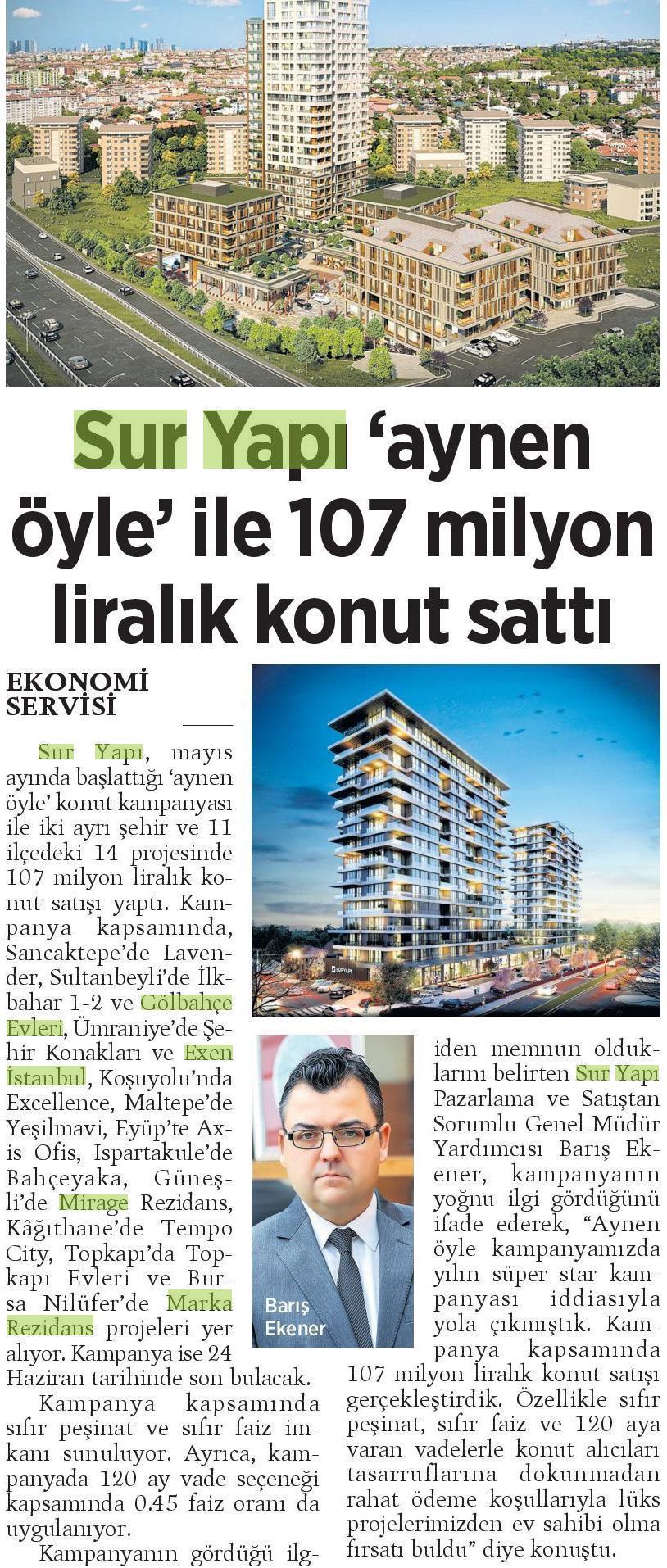 Sur Yapı Aynen Öyle İle 107 Milyon Liralik Konut Sattı