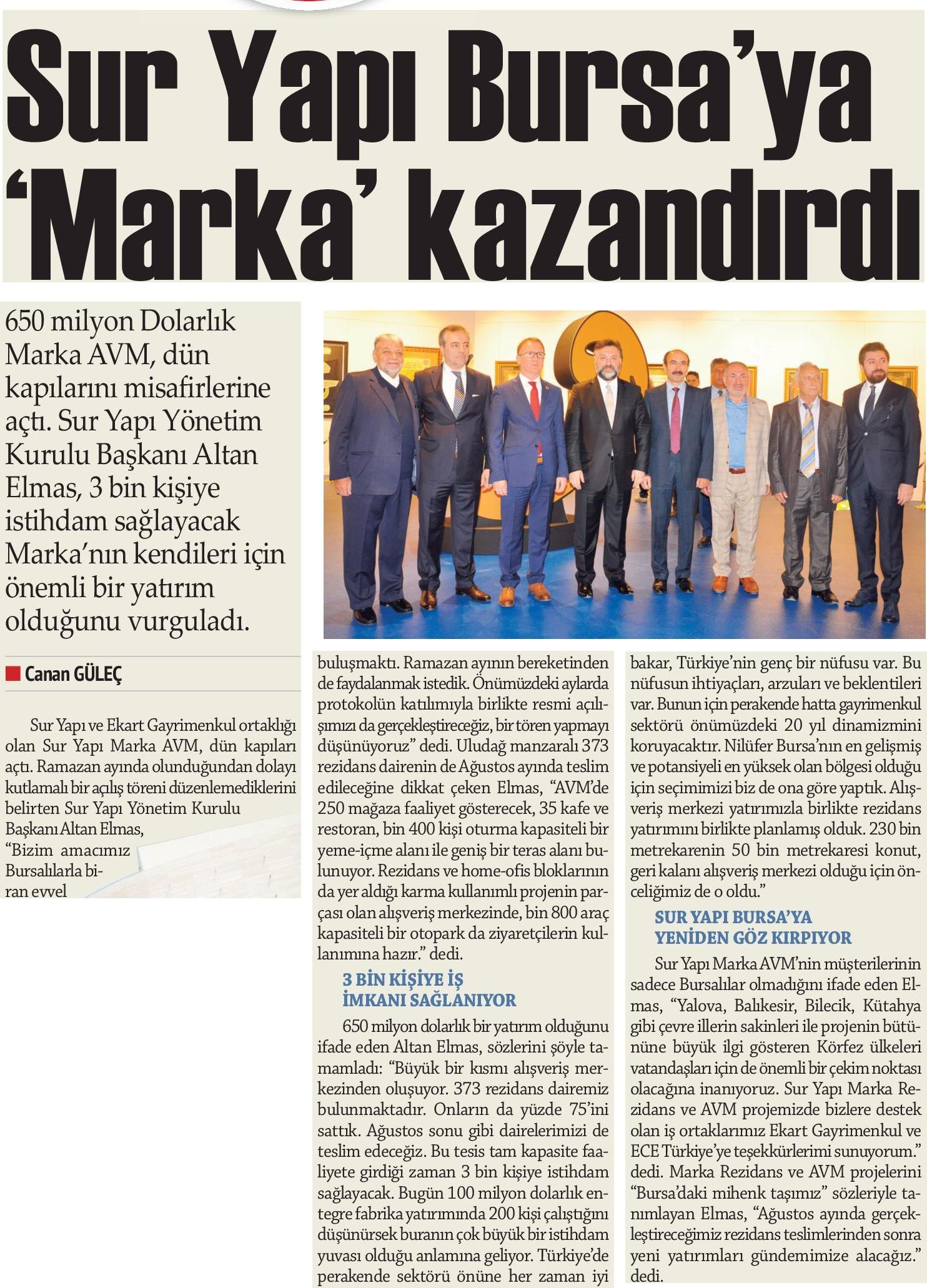 Sur Yapı Bursaya 'Marka' Kazandırdı