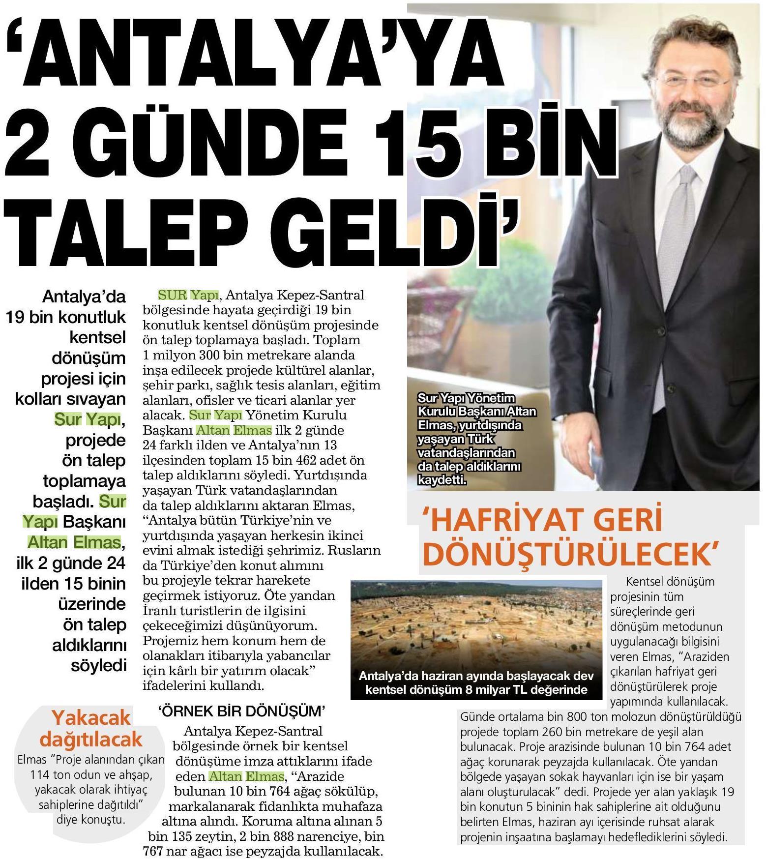 Sur Yapı'dan Antalya'da Akıllı Dönüşüm
