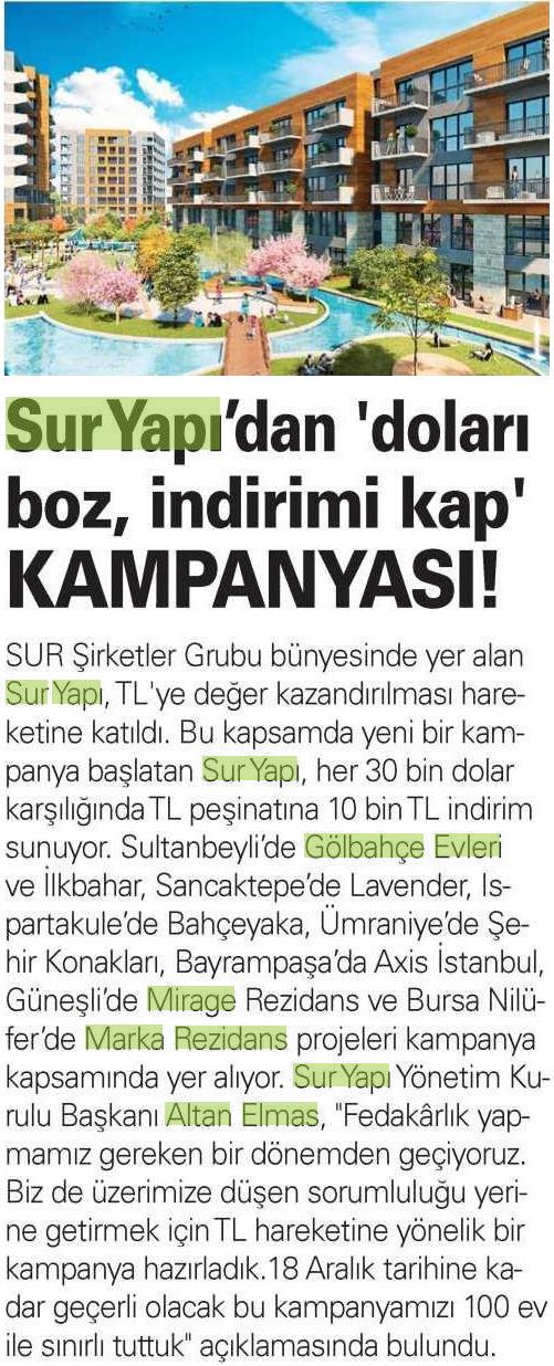 Sur Yapı'dan Dolarını Boz, İndirimi Kap Kampanyası!