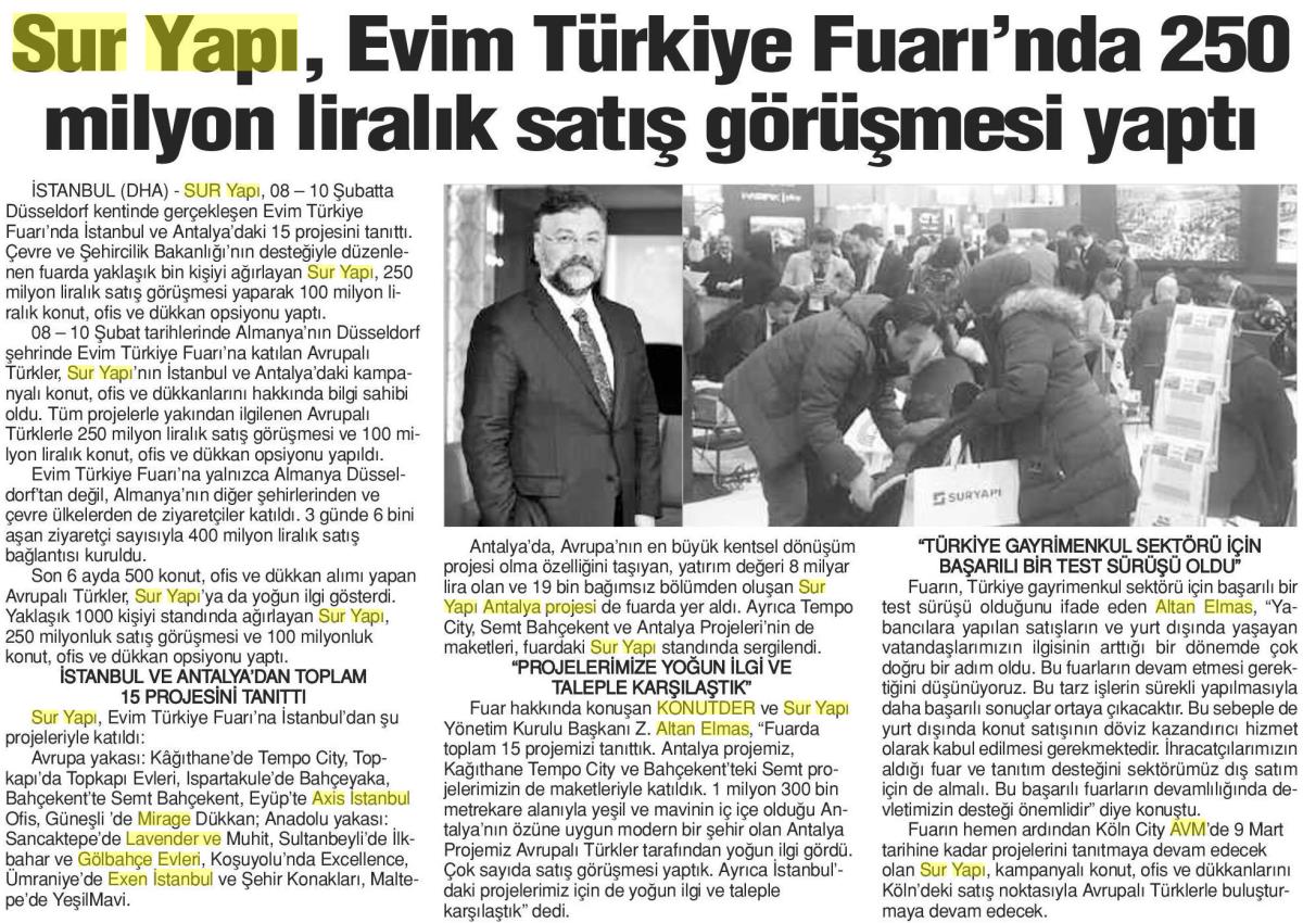 Sur Yapı Evim Türkiye Fuarı'nda 250 milyon liralık satış görüşmesi yaptı