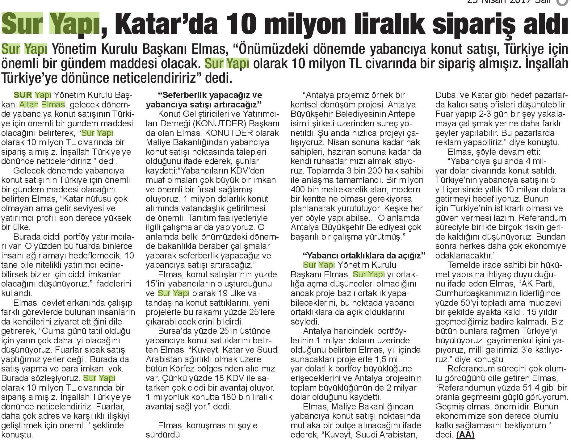 Sur Yapı Katar'da 10 Milyon Liralık Sipariş Aldı