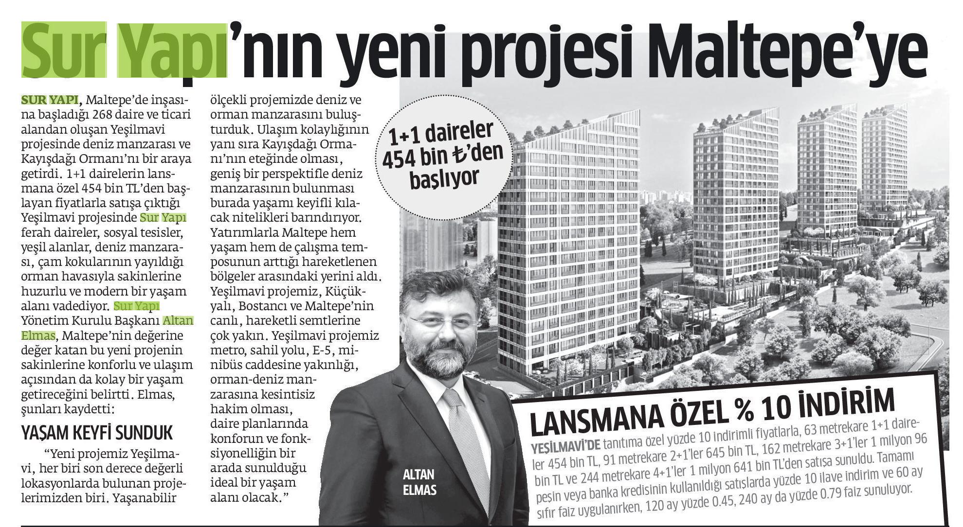 Sur Yapı'nın Yeni Projesi Maltepe'ye