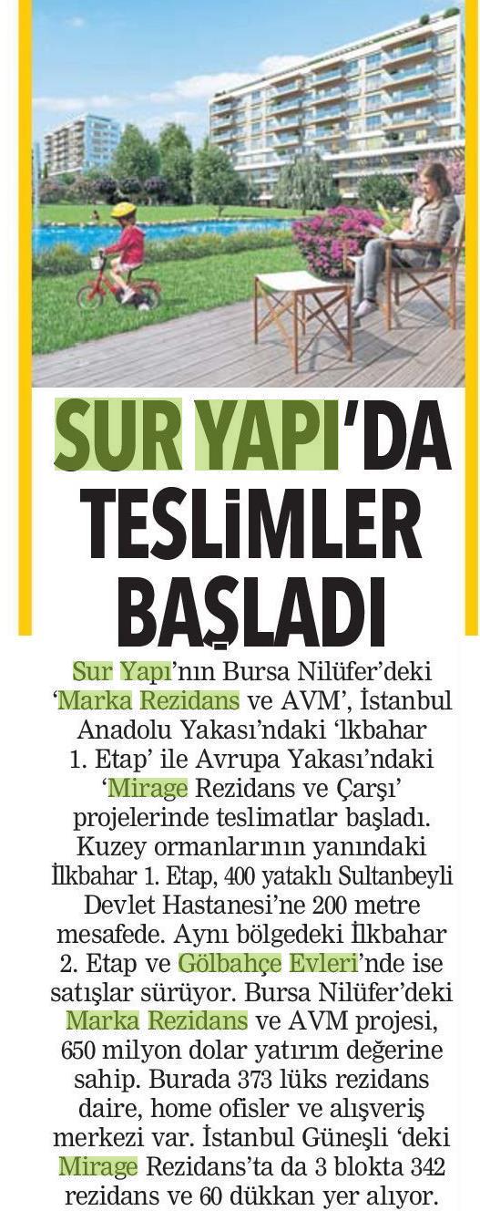 Sur Yapı Projelerinde Teslimler Başladı
