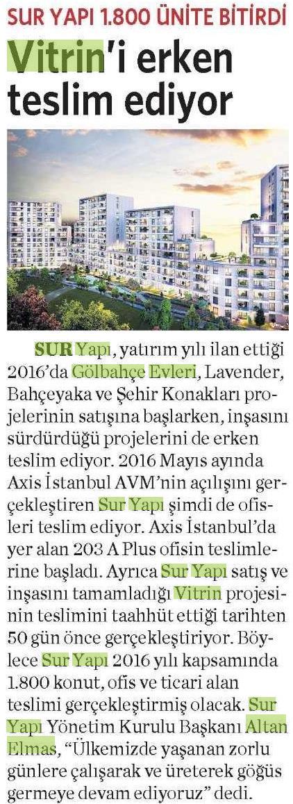 Sur Yapı Vitrin'i Erken Teslim Ediyor