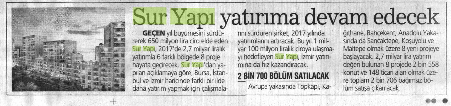 Sur Yapı Yatırıma Devam Edecek