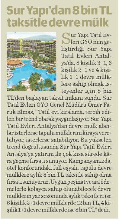 Sur Yapıdan 8 bin TLlik taksitle devremülk