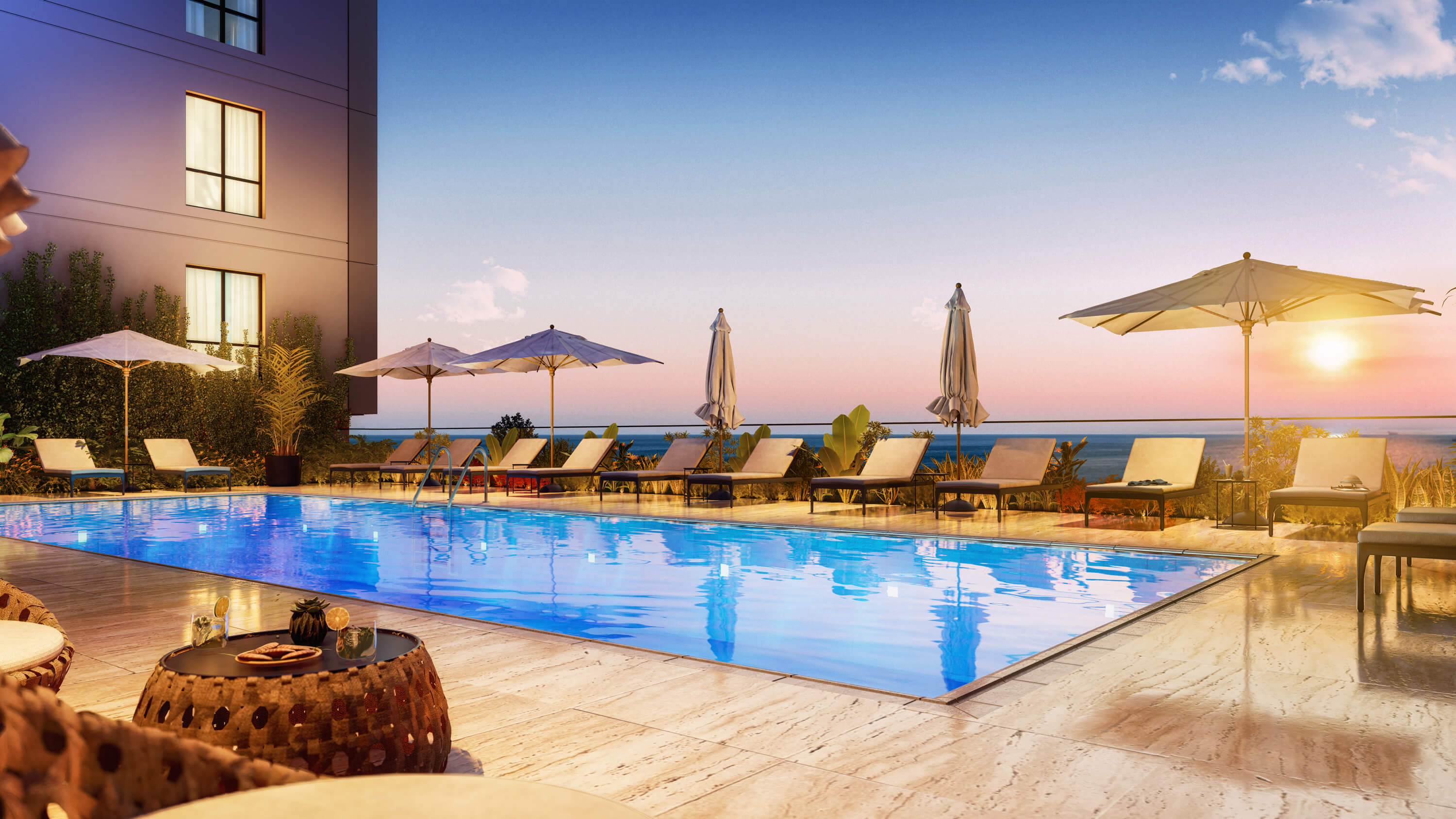 Blokların üstünde yer alan yüzme havuzu ve deniz manzarası ile Antalya Suites’te keyifli bir yaşam sizleri bekliyor!