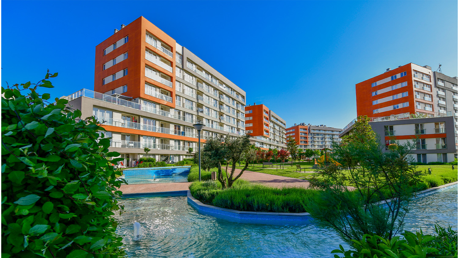 Sur Yapı İdilia konut projesi, su ve yeşil teması etrafında tasarlanmış geniş yaşam alanlarıyla eşsiz bir yaşam deneyimi sunuyor.
