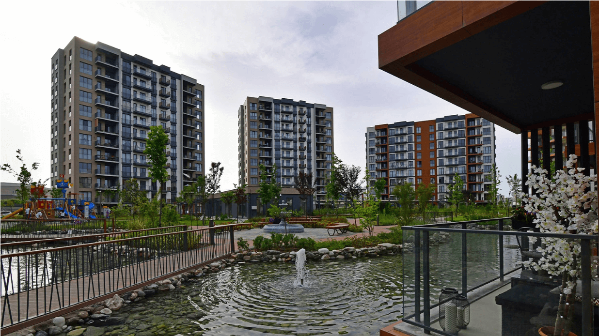 Büyük bir gölet alanı ve geniş yüzme havuzuyla suyun huzur veren etkisi yeşile eşlik ediyor. Yeşilin ve mavinin iç içe geçtiği tüm bu geniş alanlar sevdiklerinizle rüya gibi zamanlar geçirmek için ideal.