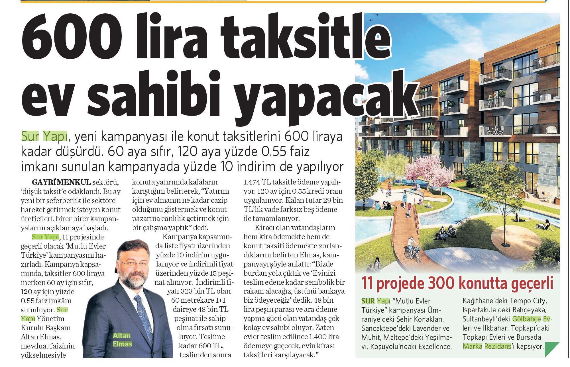 600 Lira Taksitle Ev Sahibi Yapacak
