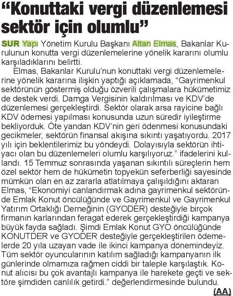 Konuttaki Vergi Düzenlemesi Sektör İçin Olumlu