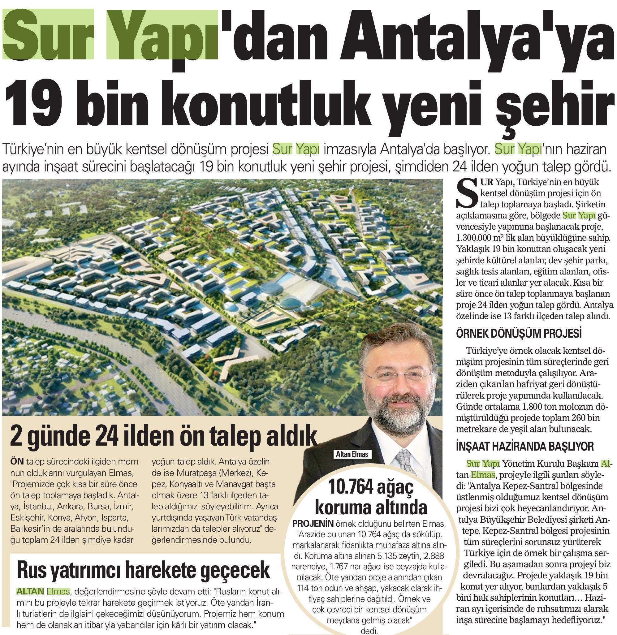 Sur Yapı'dan Antalya'ya 19 Bin Konutluk Yeni Şehir