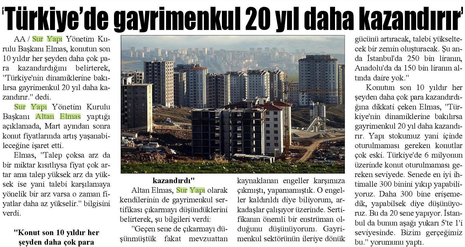 Türkiye'de Gayrimenkul 20 Yıl Daha Kazandırır